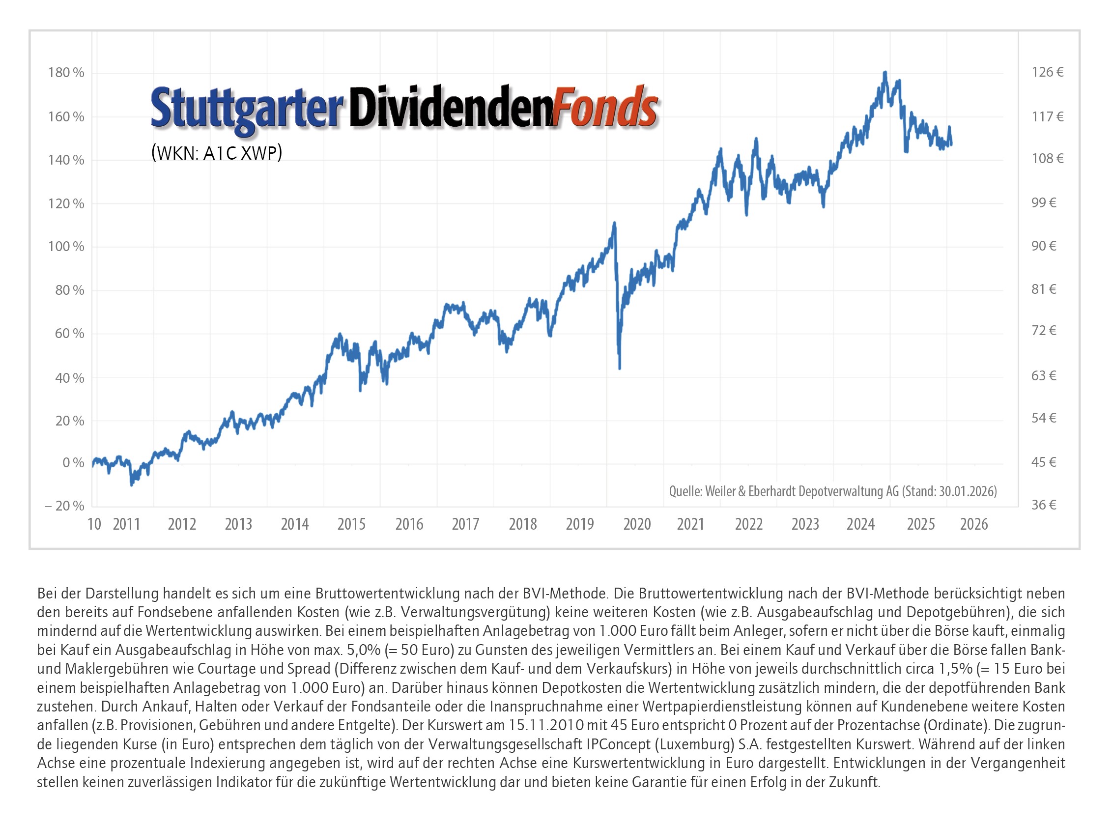 Liquide Mittel können wir, beispielsweise in Phasen schwächerer Kurse, dazu verwenden, um im Fonds gezielt Aktien zu kaufen oder aufzustocken. Dabei können auch erhaltene Dividenden reinvestiert werden. Zudem haben wir die Möglichkeit, die Gewichtung im Fonds zurechtzurücken. Denn mit der Zeit entwickeln sich die Aktienpositionen wertmäßig auseinander, weshalb durch Nachkäufe oder Teilverkäufe die Positionen angeglichen werden können. Grundsätzlich gilt, dass vergangene Wertentwicklungen keine Garantie für die künftige Performance darstellen. Mit dem Stuttgarter Dividendenfonds bieten wir Ihnen jedoch einen Aktienfonds, der gemäß unserer Expertenanalyse breit gestreut in dividendenstarke Unternehmen investiert.